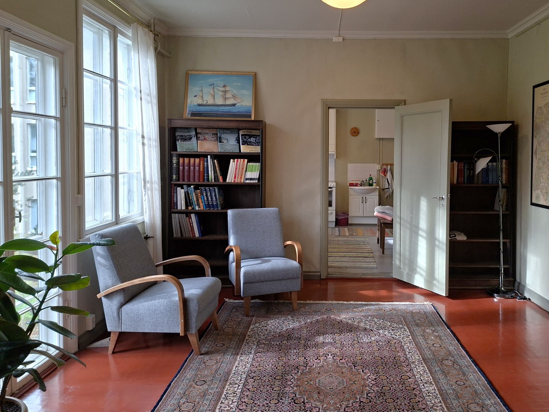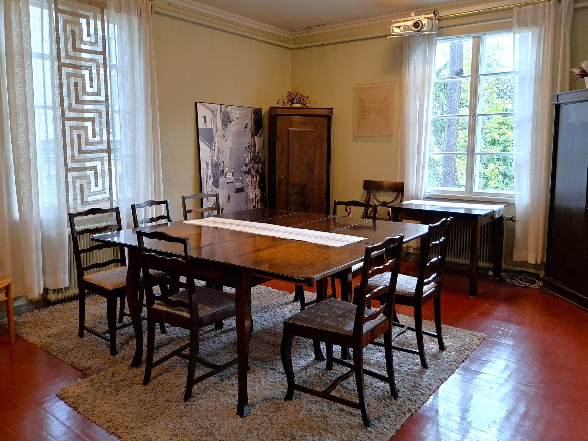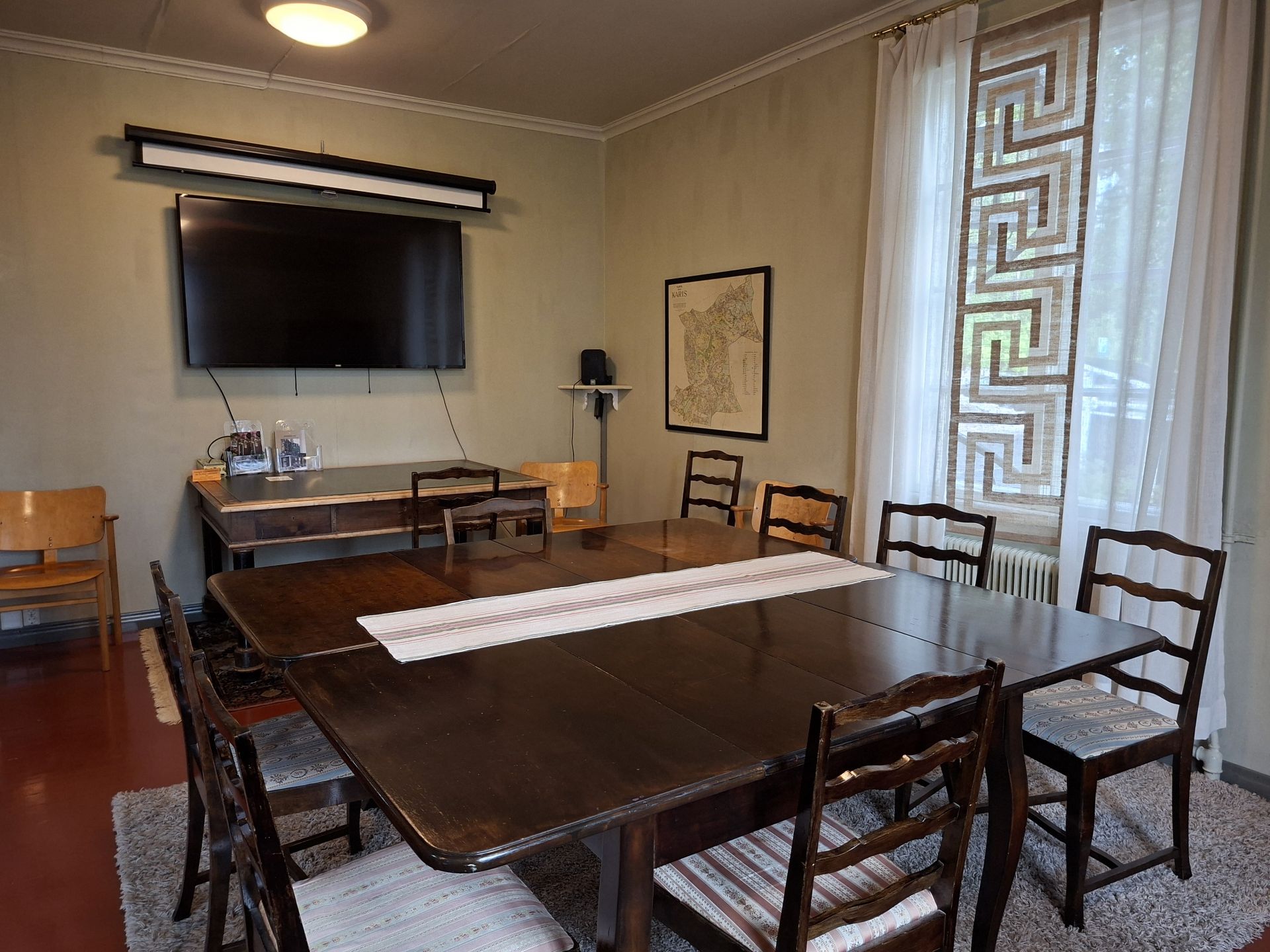 I nedre våningen finns två stora rum och kök, i övre våningen tre rum. Till utrustningen hör modern mötesteknik och kök med kärl.