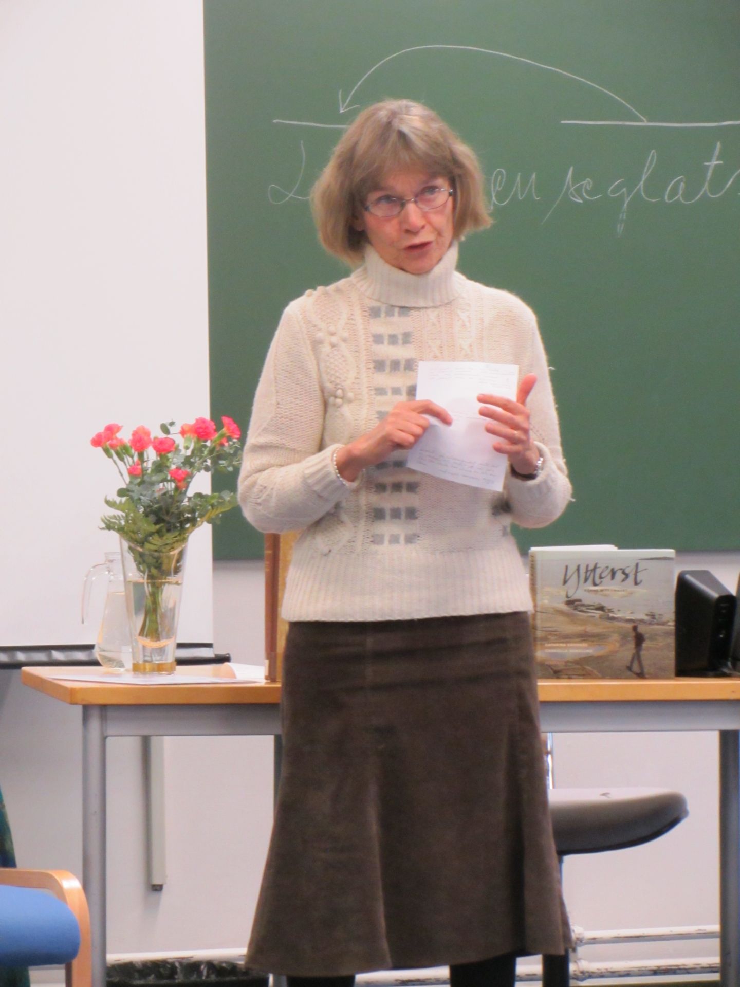Mary-Ann Bäcksbacka berättade om sitt skrivande och läste egna dikter under detta första samtal kring lyrik under våren.